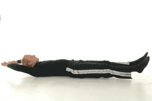 استلقي على الأرض مع رفع الذراعين خلف الأذن ورفع الأرجل بدون مساعدة الحائط